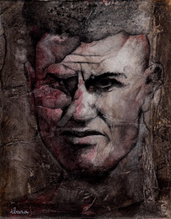 portrait de Jack Dempsey peinture acrylique sur toile par Ibara format 27cm sur 22cm Signé Ibara