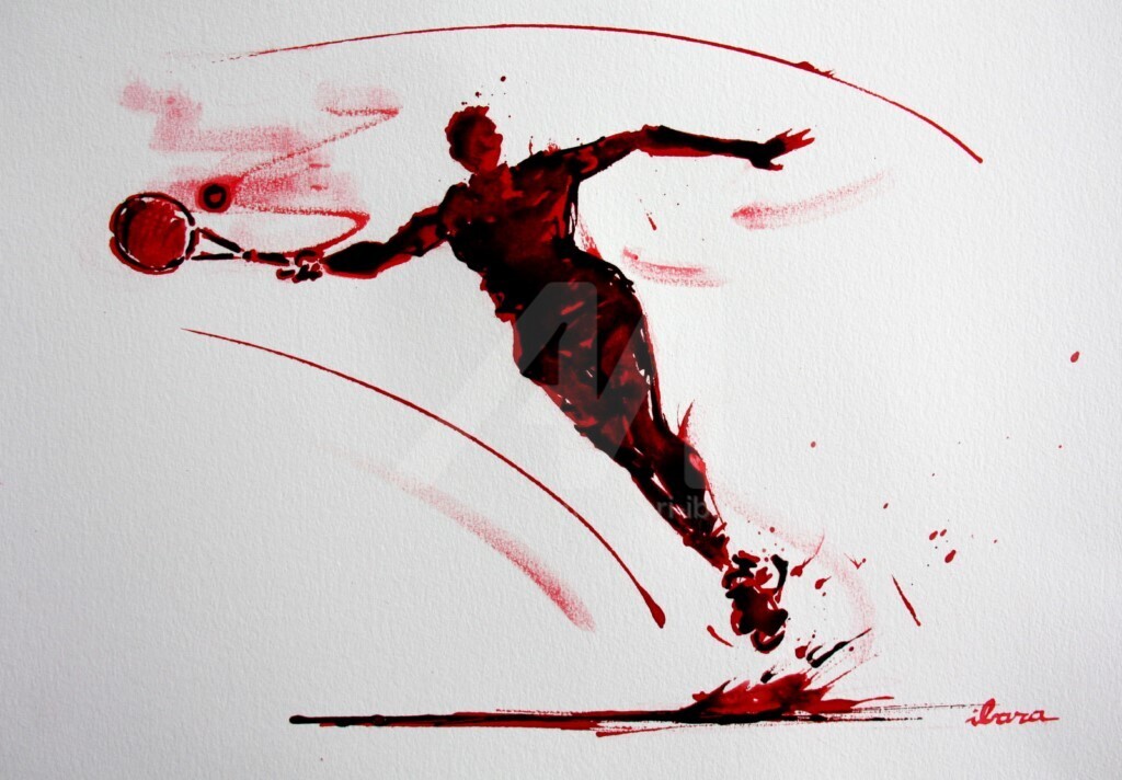 "TENNIS N°21" (dessin d'Ibara à l'encre rouge et sanguine sur papier aquarelle 300gr format 30cm/42cm)