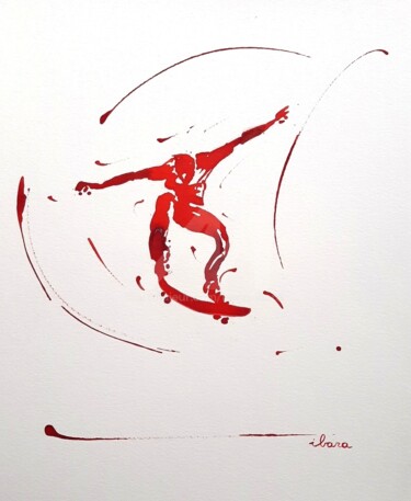 encre rouge de Henri Ibara sur papier aquarelle 300gr (format 40cm 50cm) sur le thème de la pratique du skateboard